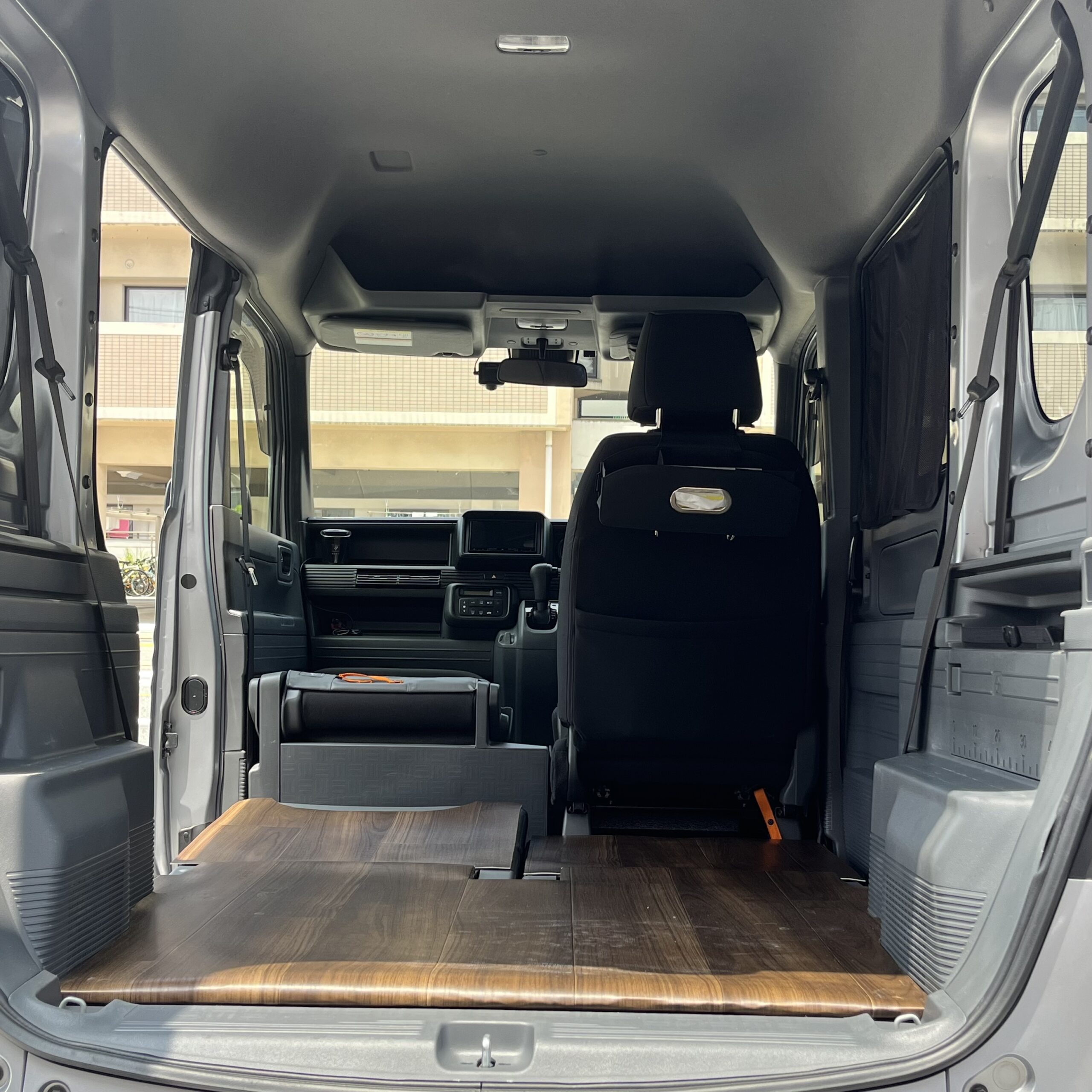 後ろのスペースはフラットに広く確保しておりますが、ケージが必要な際はお申し付けください。