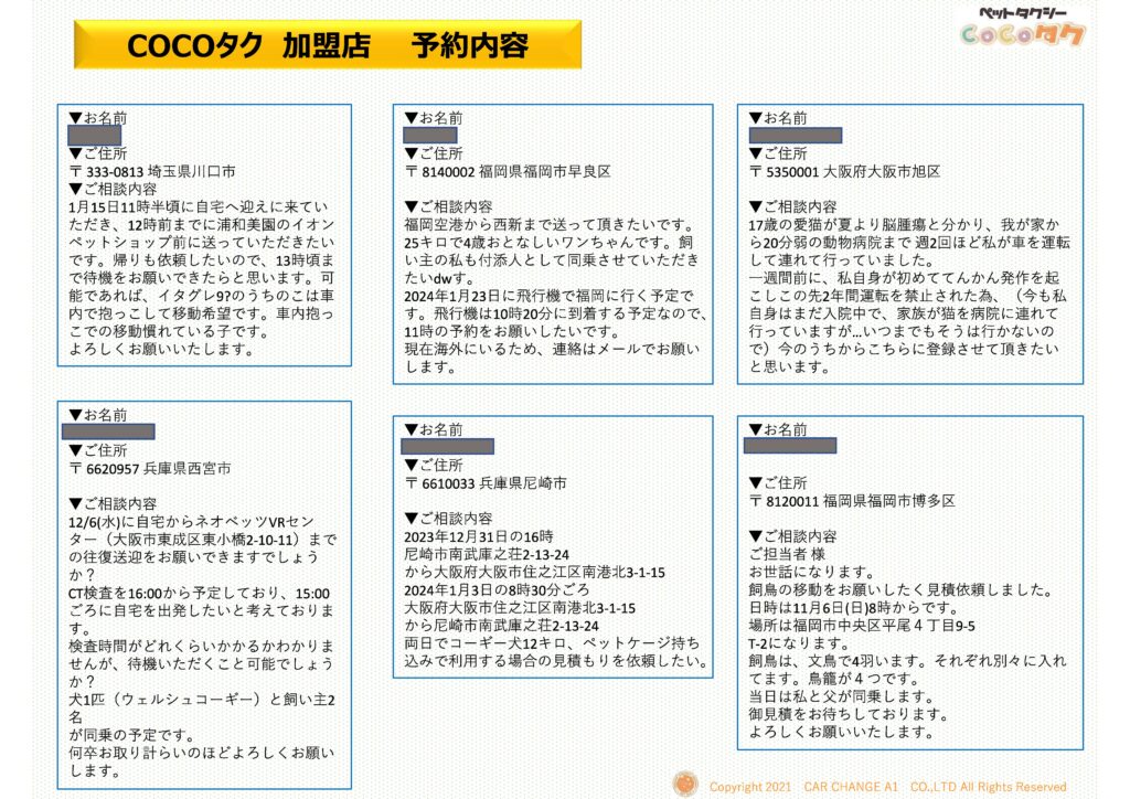 | 屋号 | ペットタクシーCOCOタク福岡博多店 |